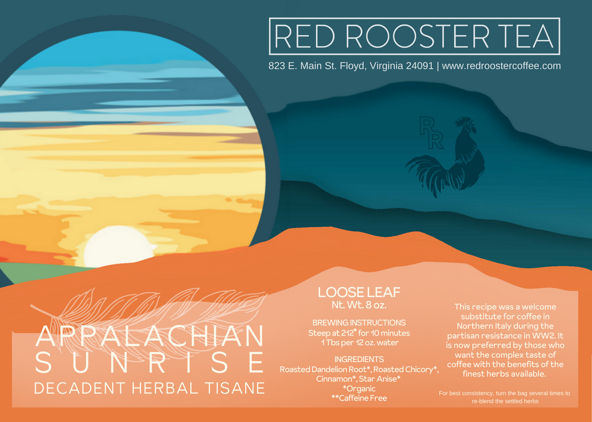 Gently roasted dandelion and chicory root are blended with the finest cinnamon chips and cut star anise. During WWII, the Tyrolean folk of Northern Italy would gather common herbs to replace their coffee, which was scarce at the time. This prized brew became a source of nostalgia for many after the war and continues to be a common morning drink for young and old.