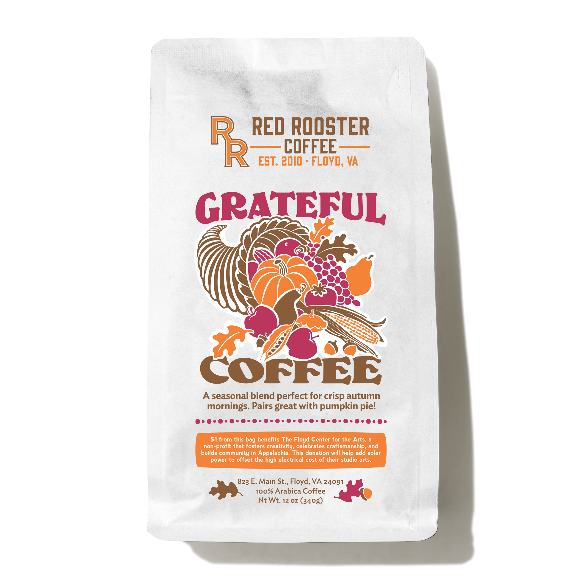 Our popular seasonal blend warms up crisp autumn mornings and pairs perfectly with pumpkin pie. This festive cup has notes of roasted marshmallow, star anise, cinnamon, and candied yams. $1 from this bag benefits The Floyd Center for the Arts, a non-profit that fosters creativity, celebrates craftsmanship, and builds community in Appalachia. This donation will help add solar power to offset the high electrical cost of their studio arts facilities.